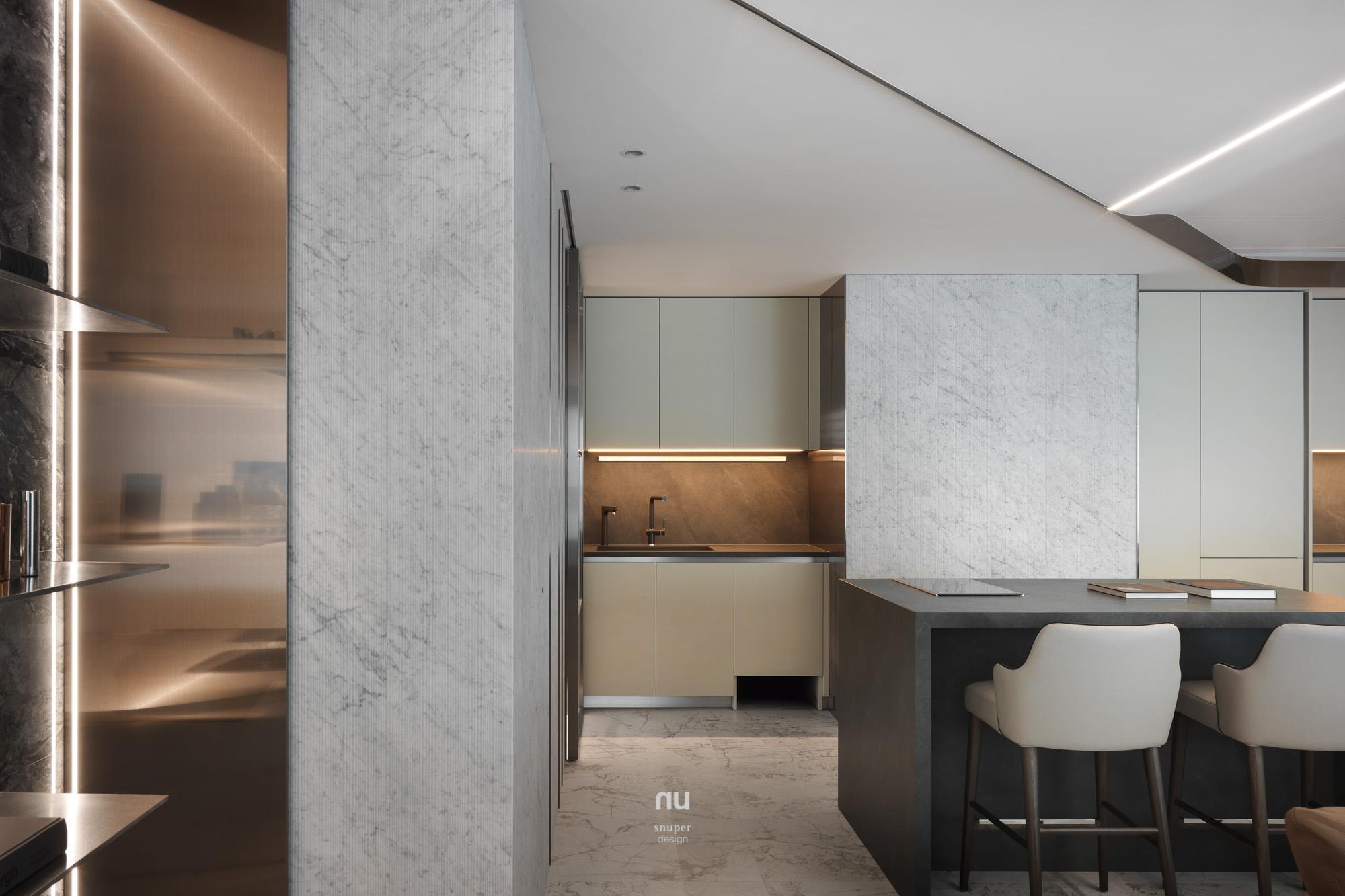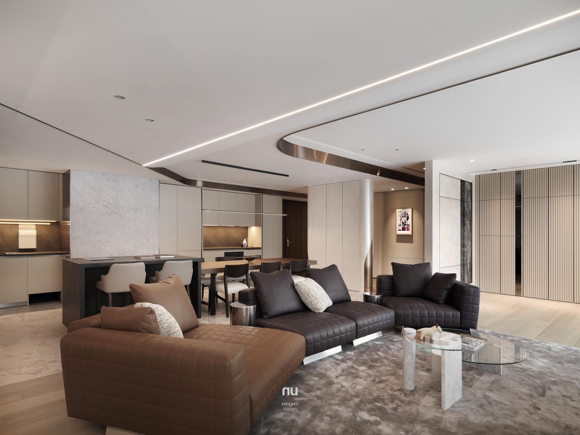 設計座落於市中心綠地旁,以低調奢華為基調,回應屋主對放鬆、優雅與摩登氣息並存的居住期待。屋主長年往返世界各地,期望家的角色不只是招待與休憩,更是一處能長時間安放生活節奏的私人居所。上打破原始配置,重新調整為「兩房兩廳」的寬敞架構,使空間尺度回歸更適合兩人長住的日常使用,同時預留未來彈性,讓居住隨時間推進,依然保有從容與秩序。