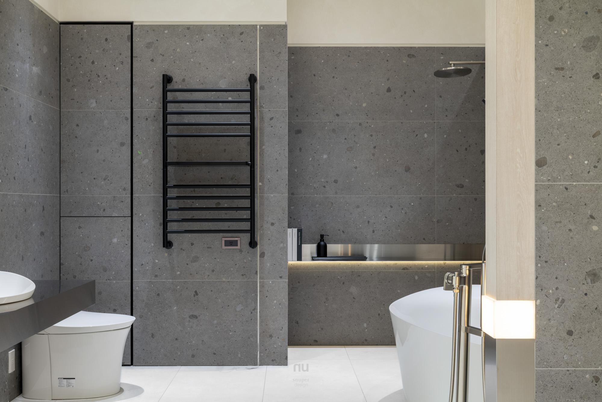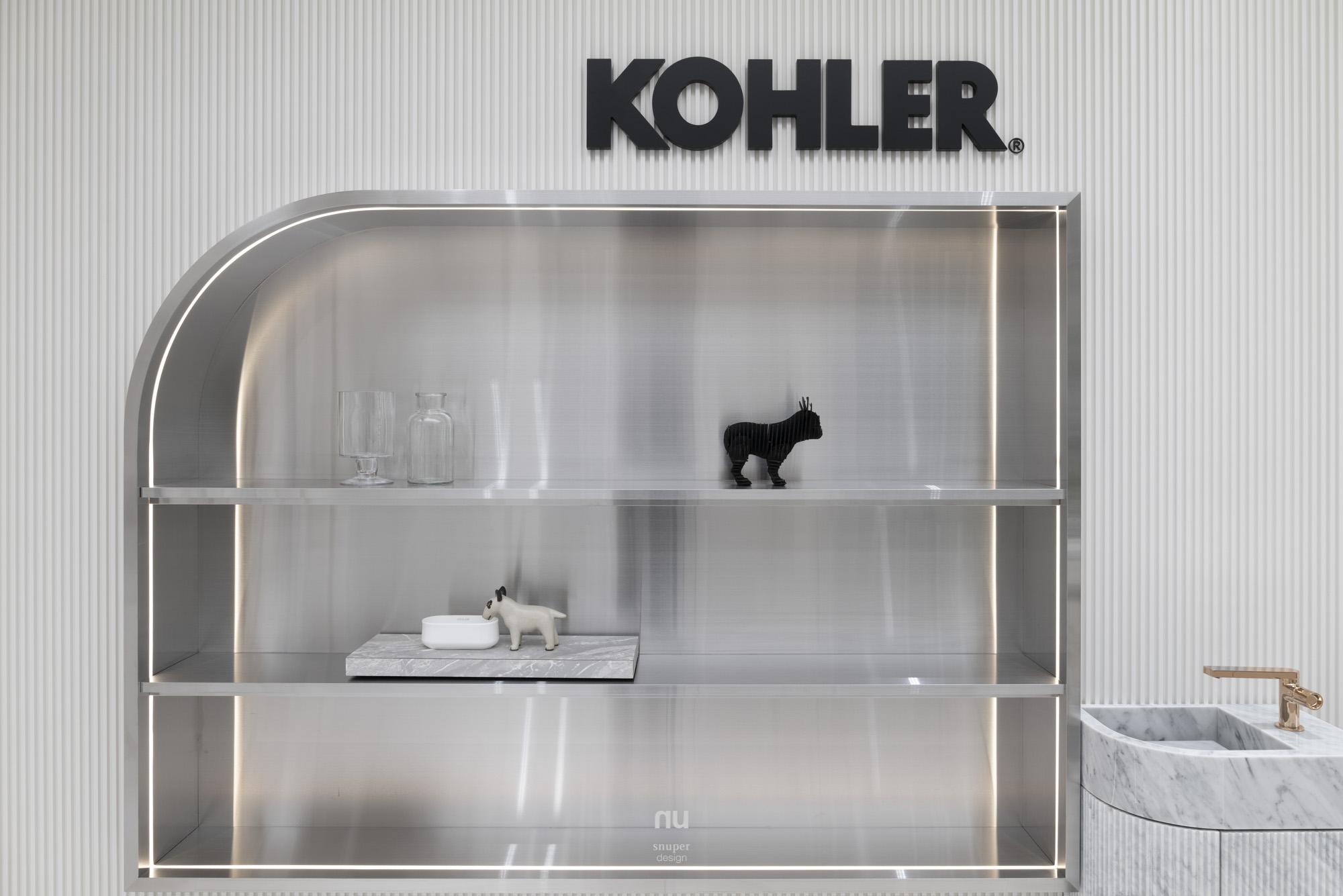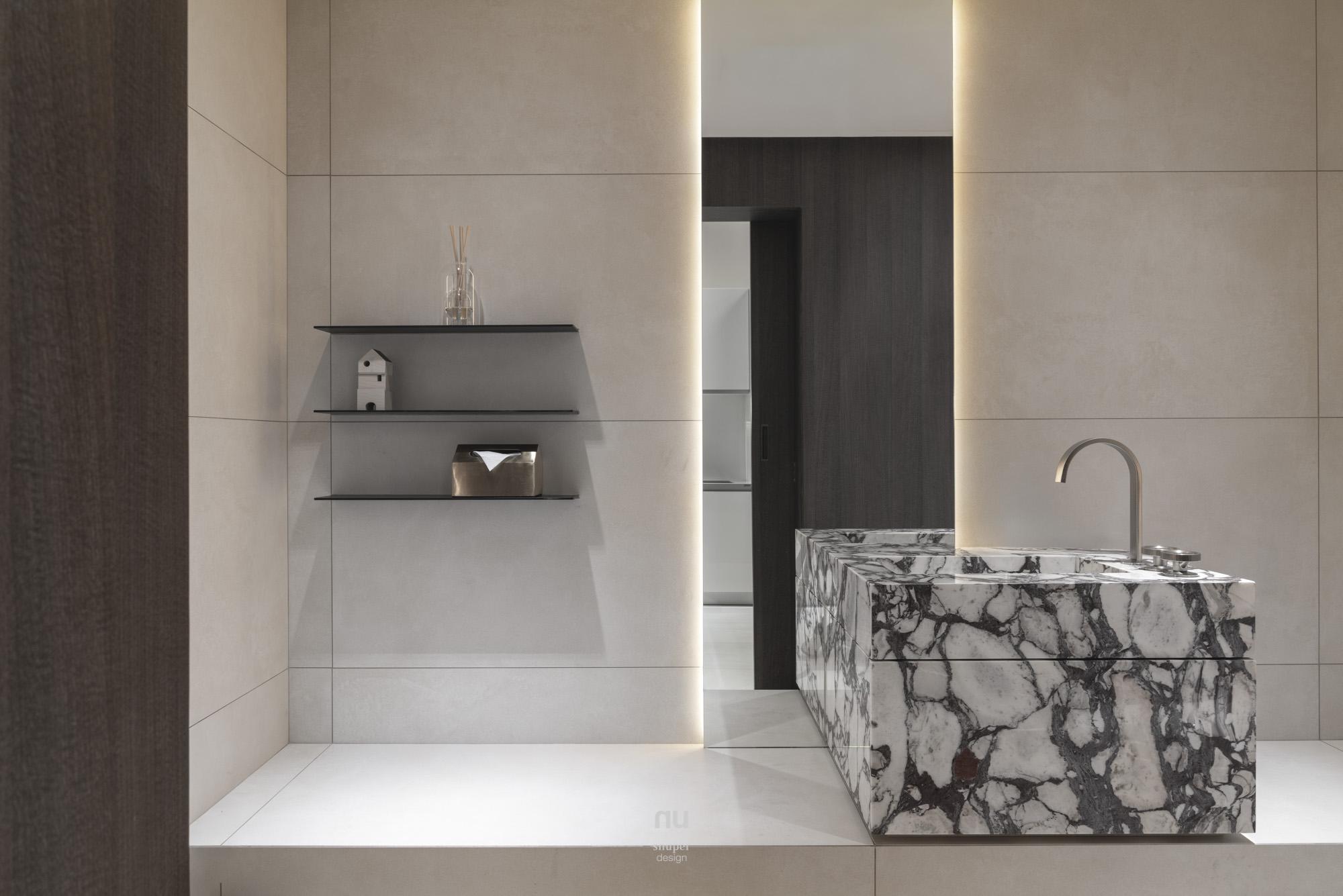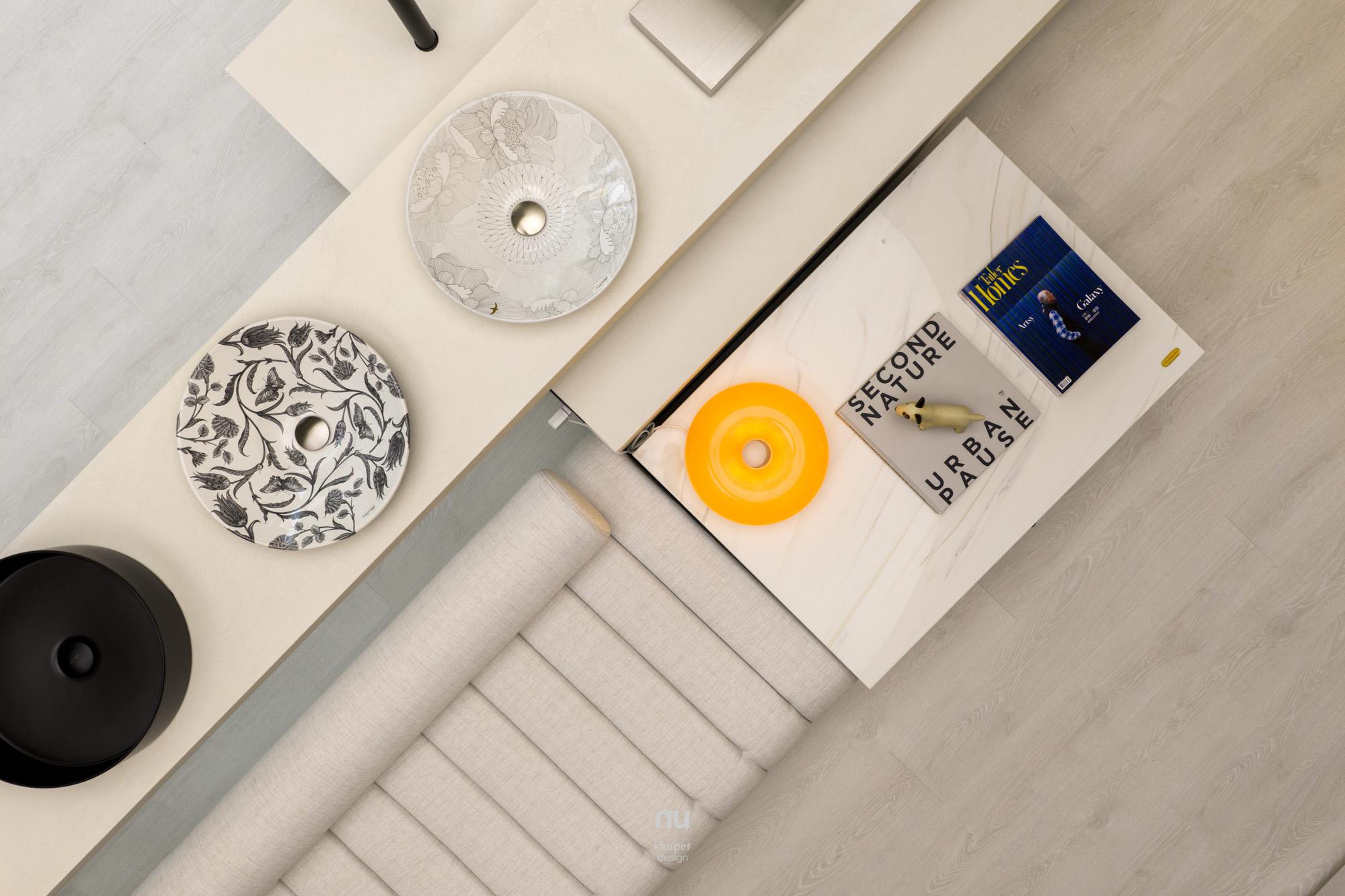 在這裡產品不再停留於陳列之中,而是在貼近日常的情境裡被自然理解。展間的角色,也因此有了更細膩的詮釋。以低彩度為基底,運用塗料、深淺飾面、人造石、木質紋理與金屬元素,以及光膜與造型板等語彙,建立安靜而細緻的層次。天花中的圓形開口與線性光帶形成主要節奏,光線在不同區域之間緩慢轉換,空間感受亦隨之連續展開。
