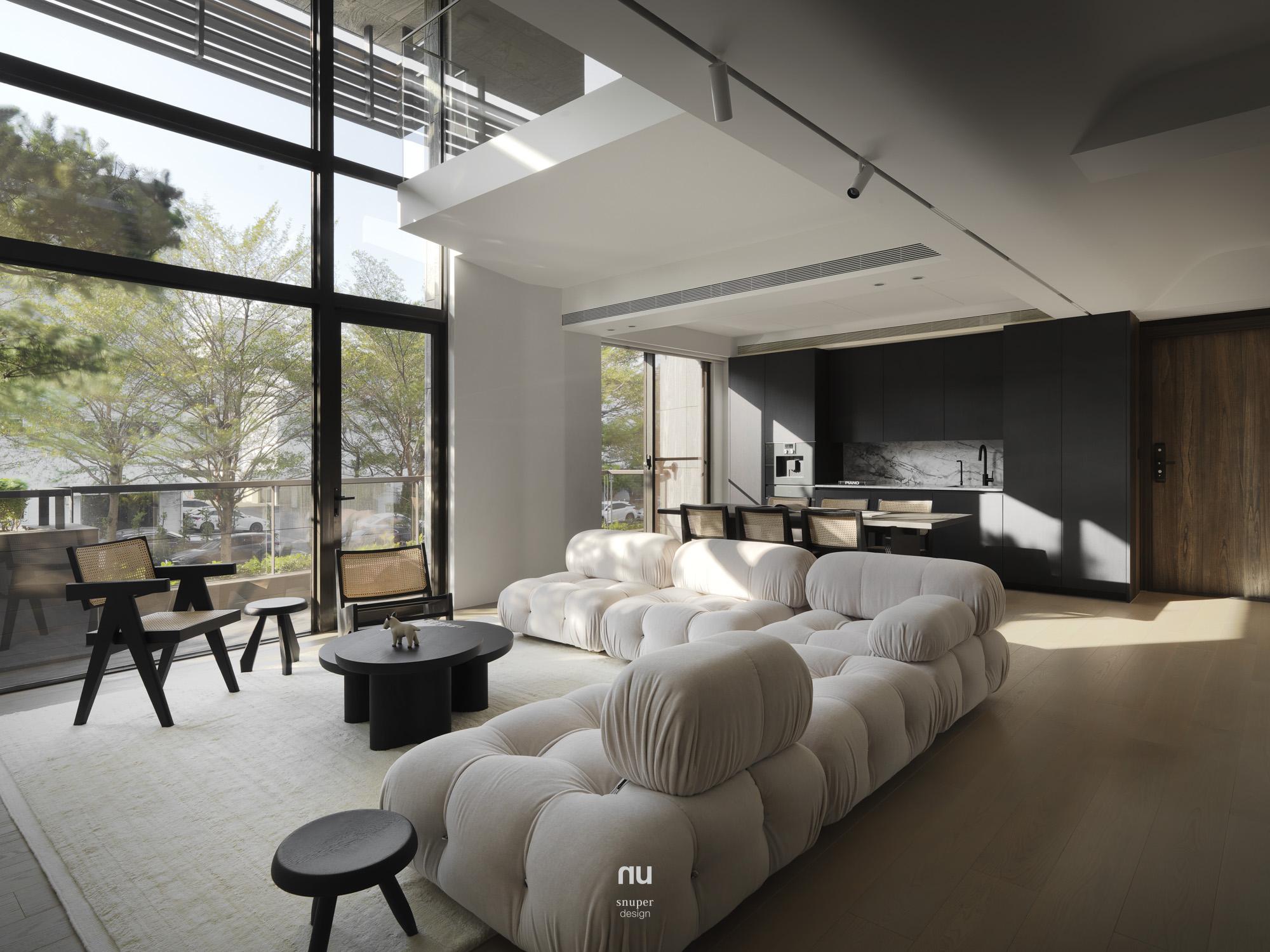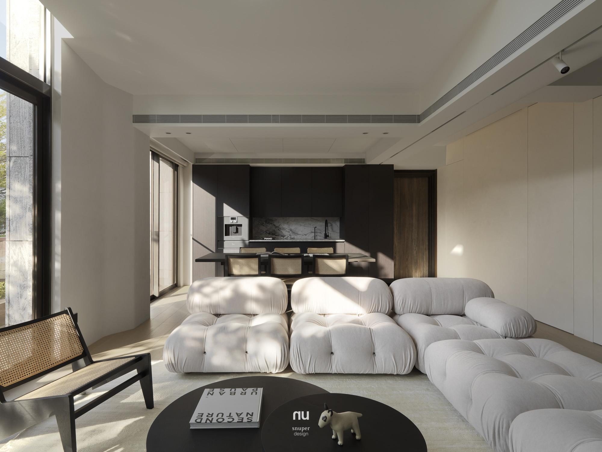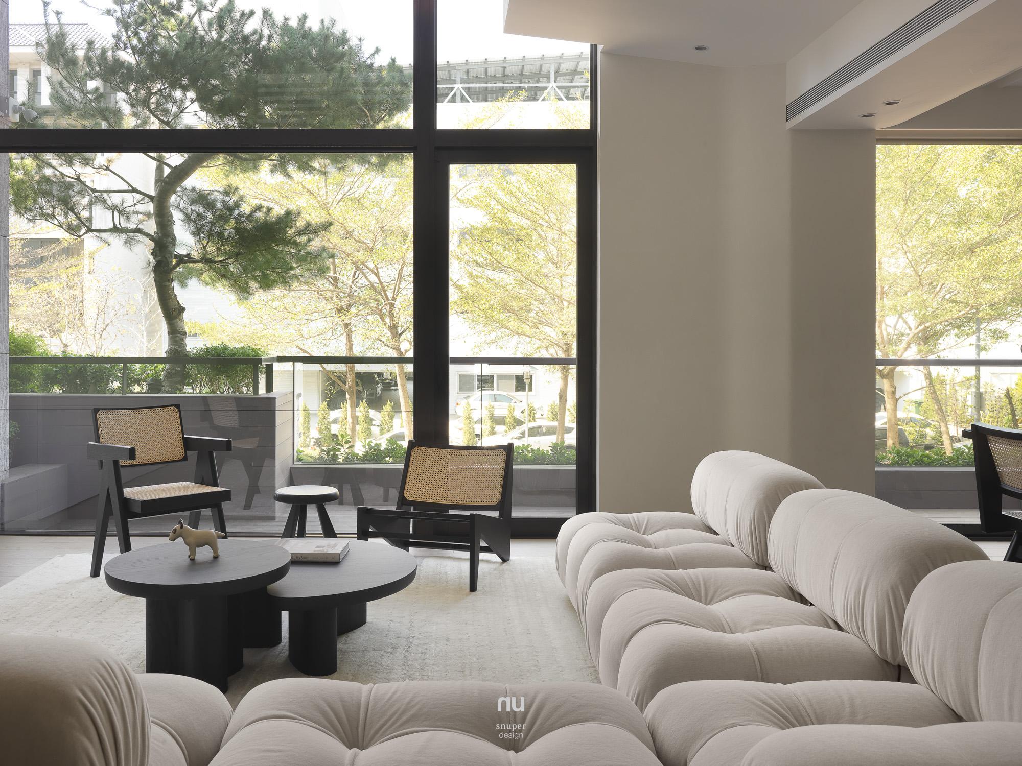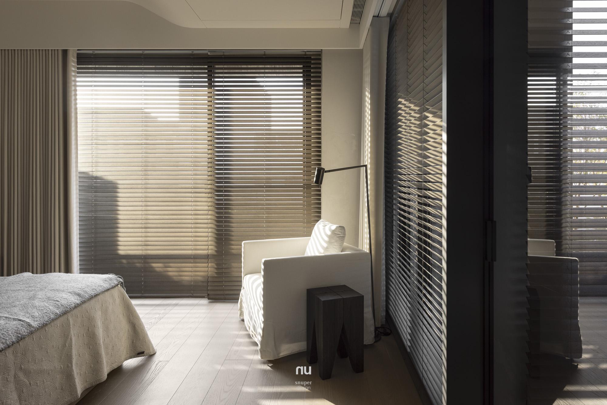 回應屋主對寧靜、耐看與舒適的期待,整體以Japandi為基調,取低彩度鋪陳空間底蘊,讓室內語言自然承接建築外觀與基地環境。漆、木、石、布與玻璃構成溫潤而克制的表情,在柔和光線的推移下,層次被緩緩展開,日常也因此顯得更輕、更靜。