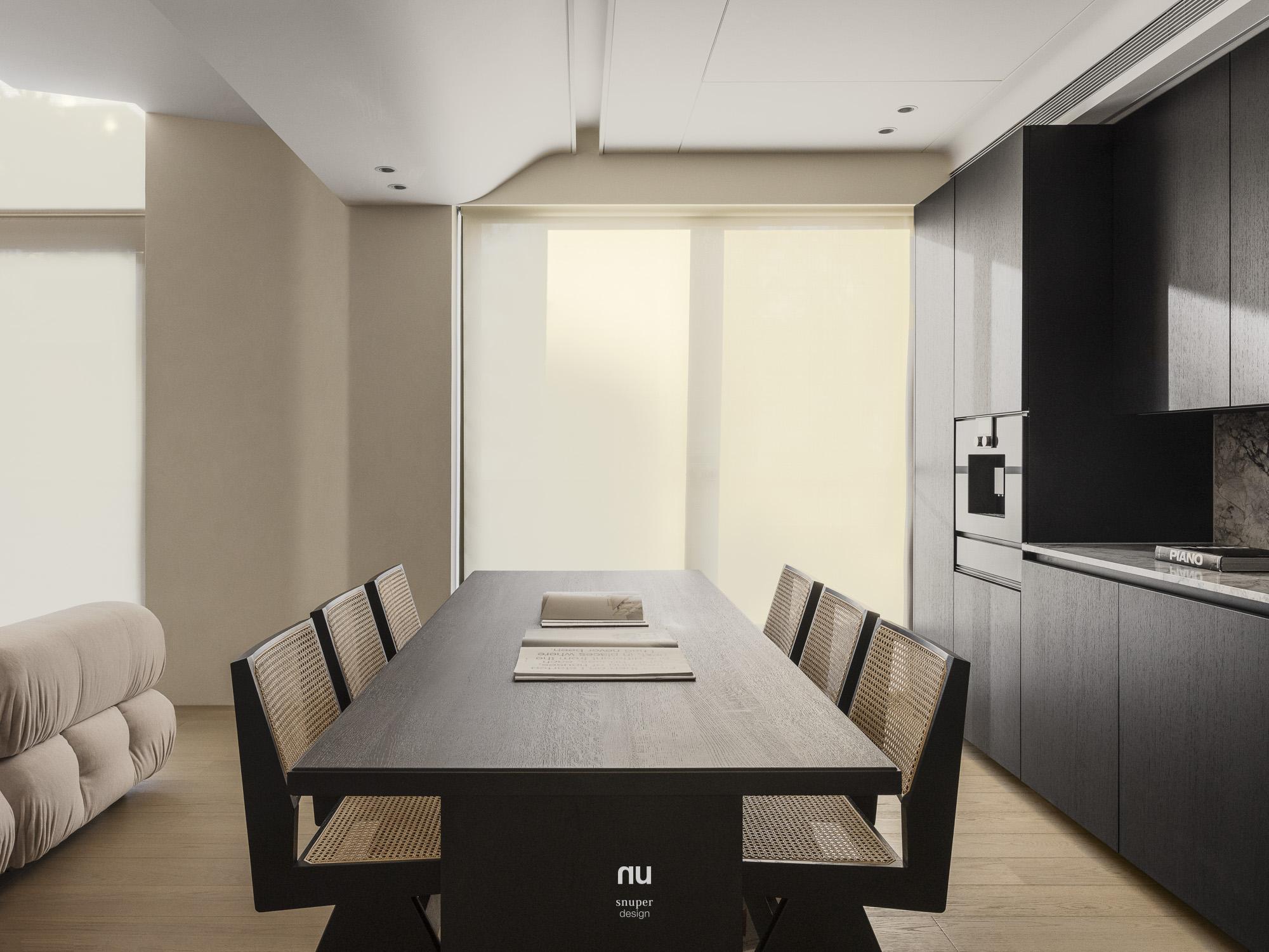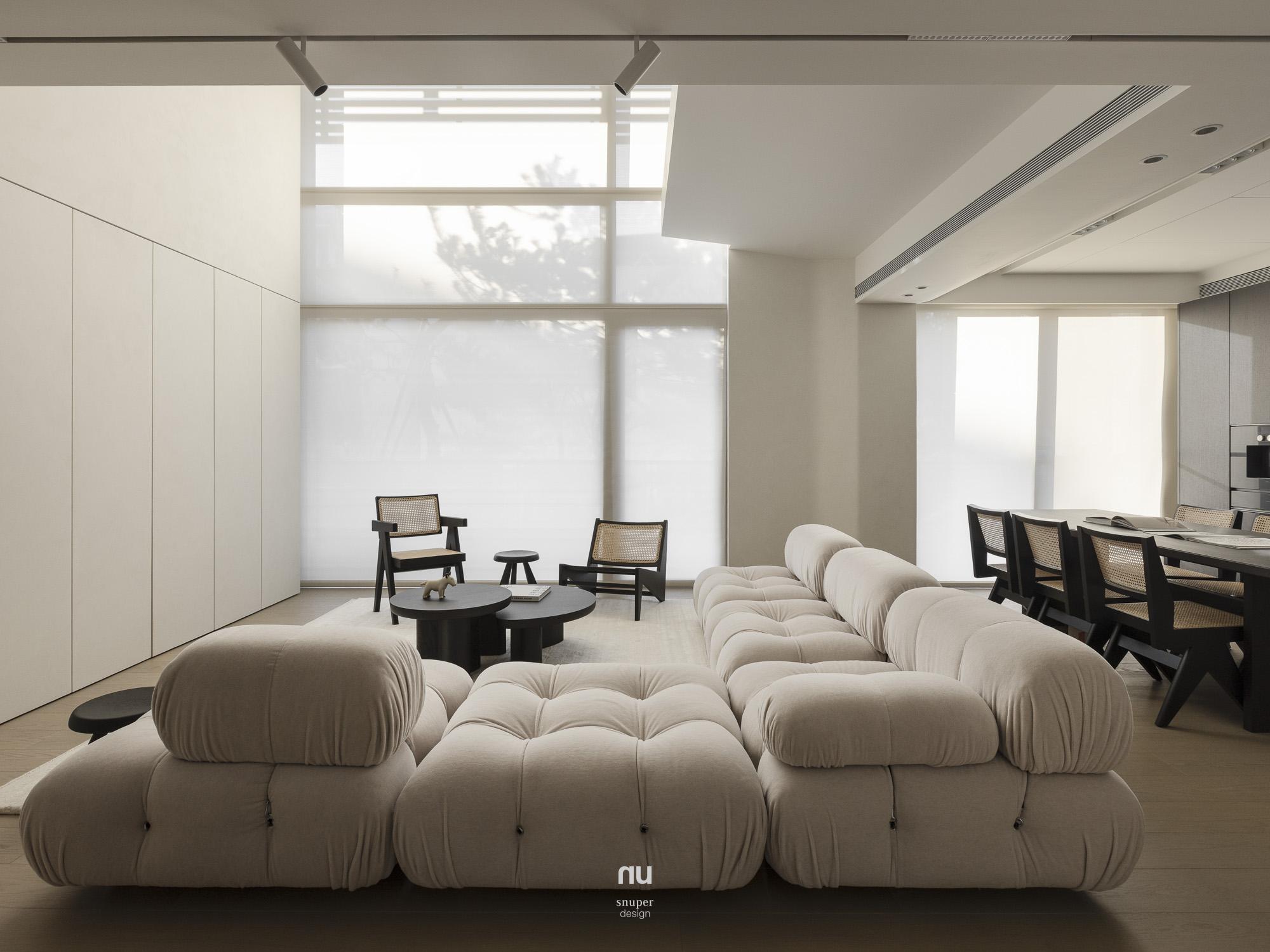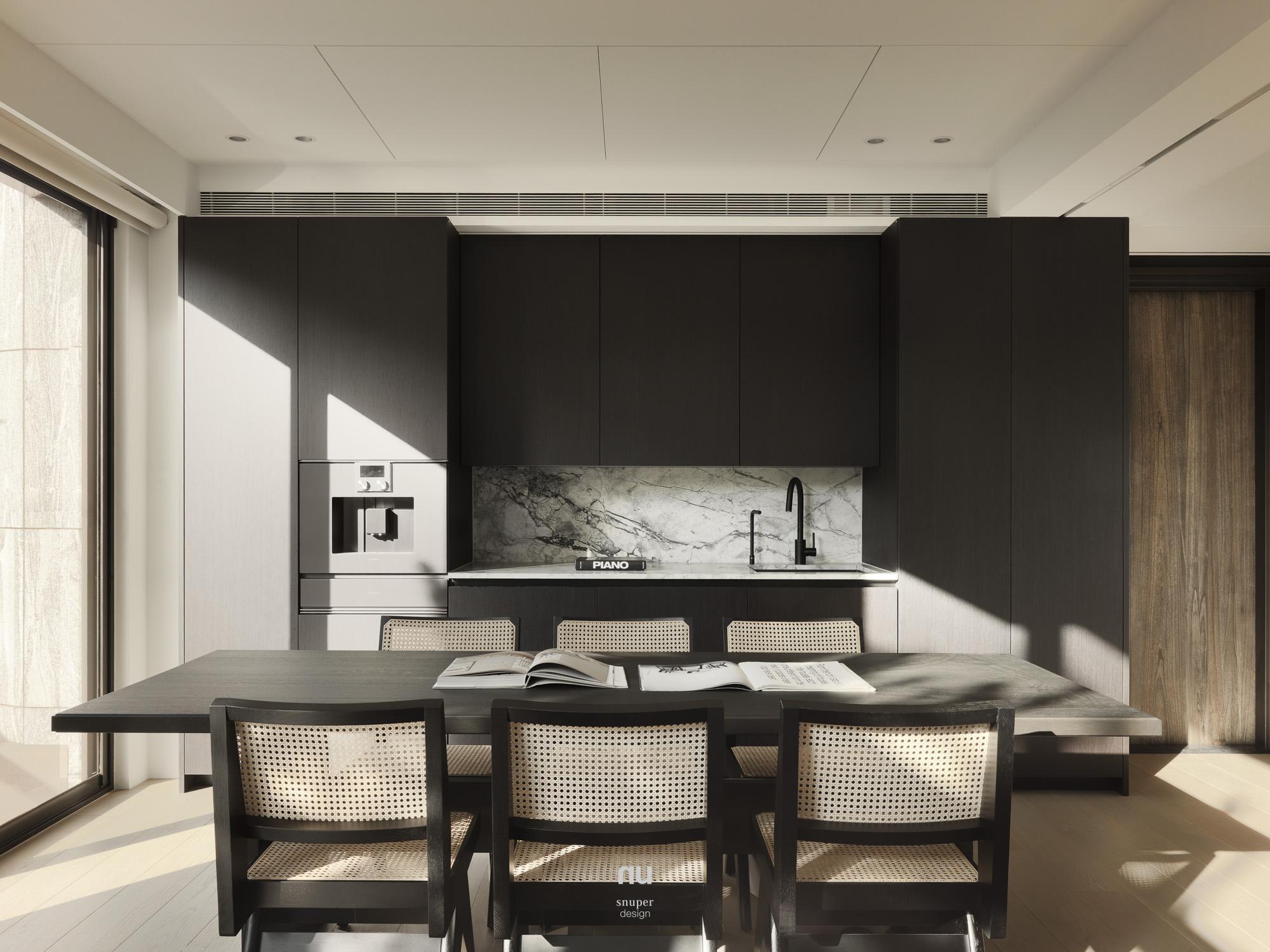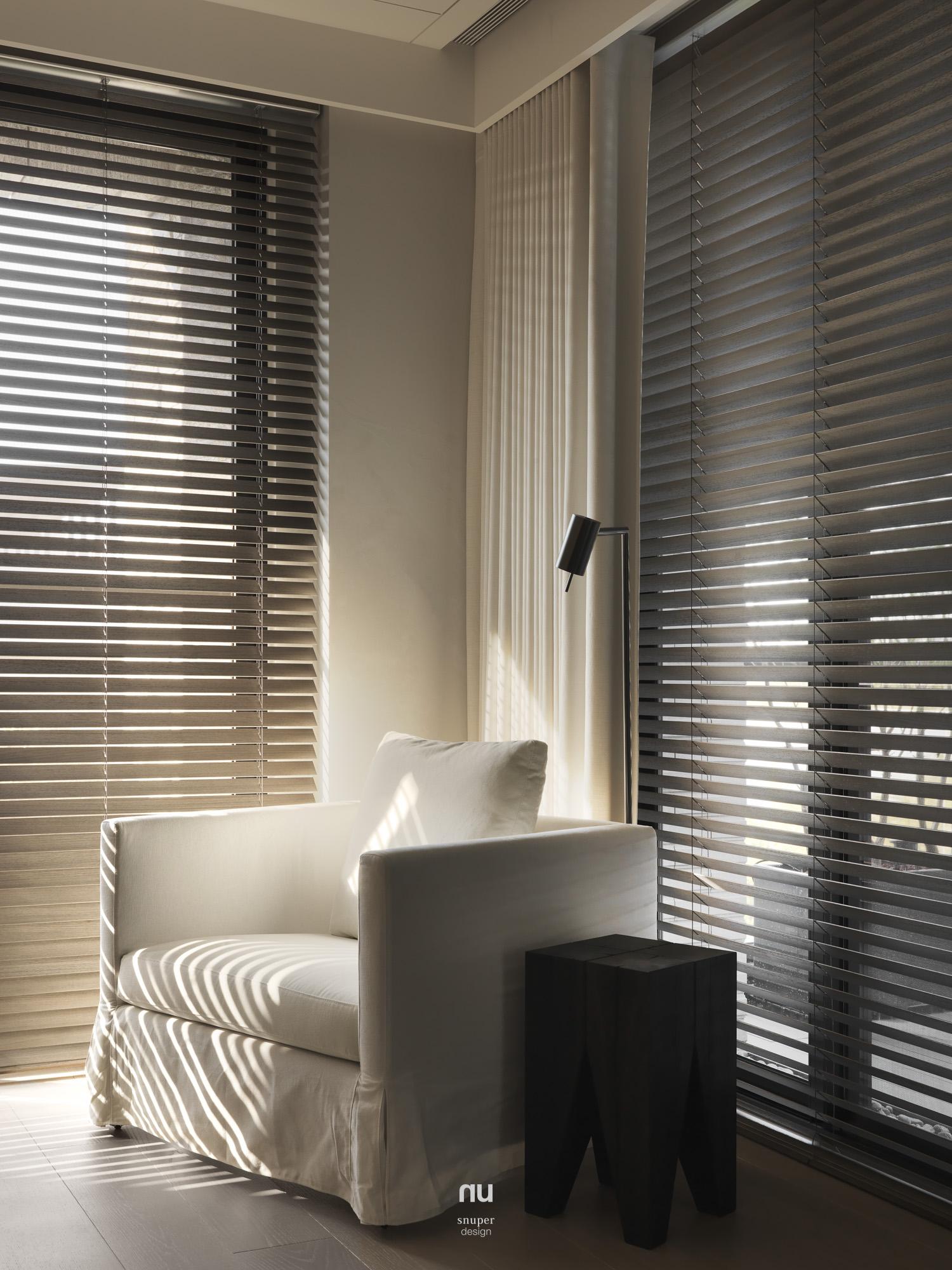 回應屋主對寧靜、耐看與舒適的期待,整體以Japandi為基調,取低彩度鋪陳空間底蘊,讓室內語言自然承接建築外觀與基地環境。漆、木、石、布與玻璃構成溫潤而克制的表情,在柔和光線的推移下,層次被緩緩展開,日常也因此顯得更輕、更靜。