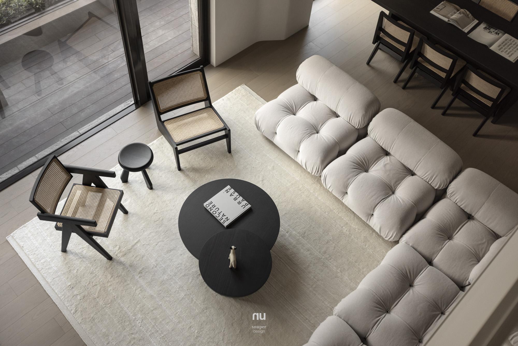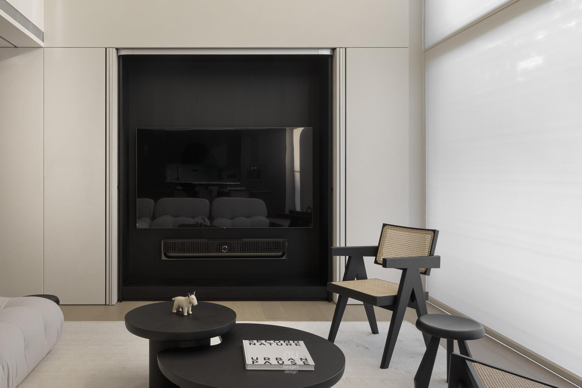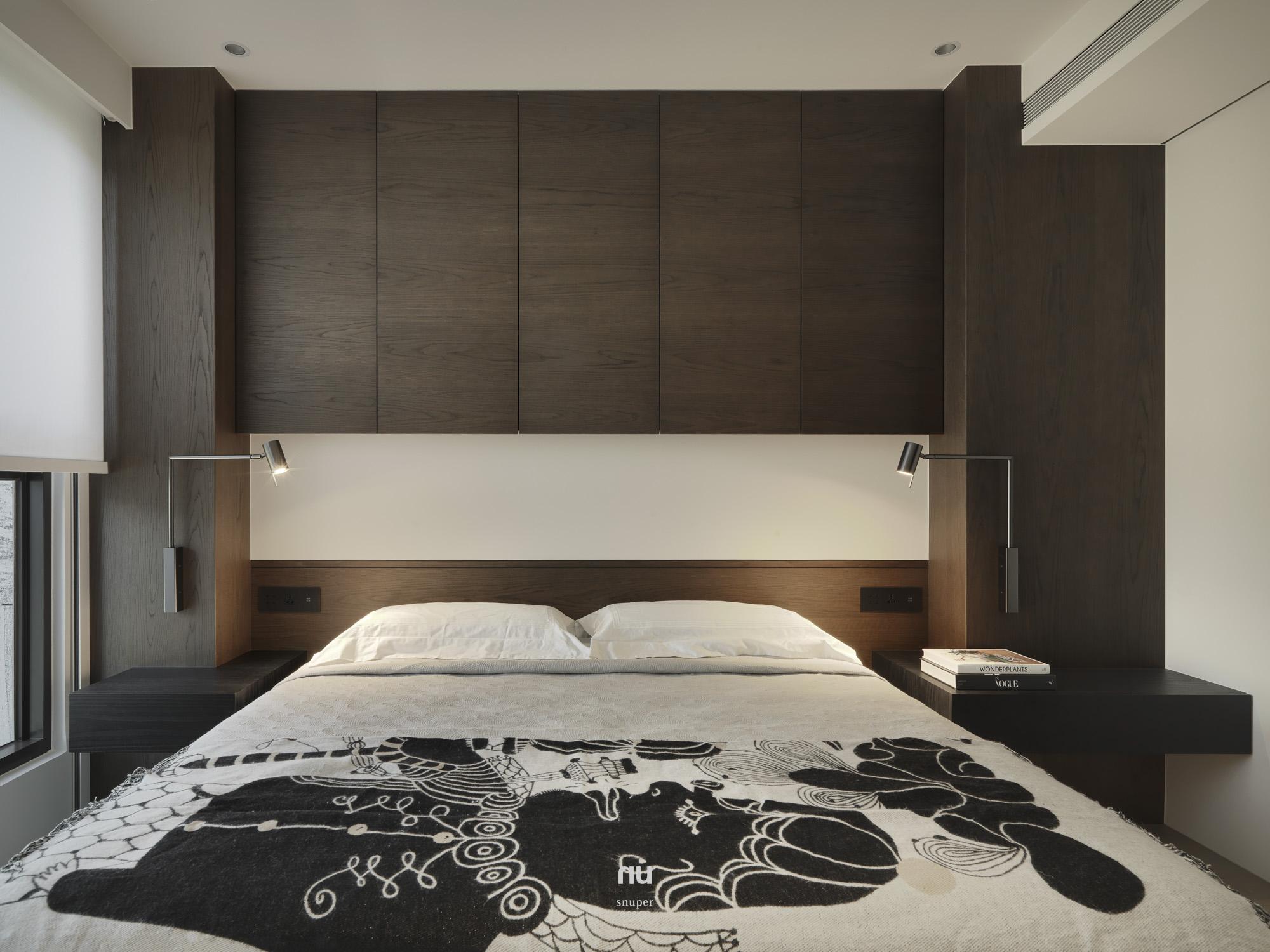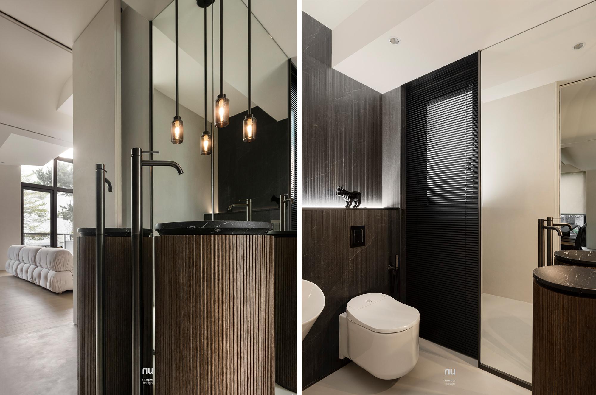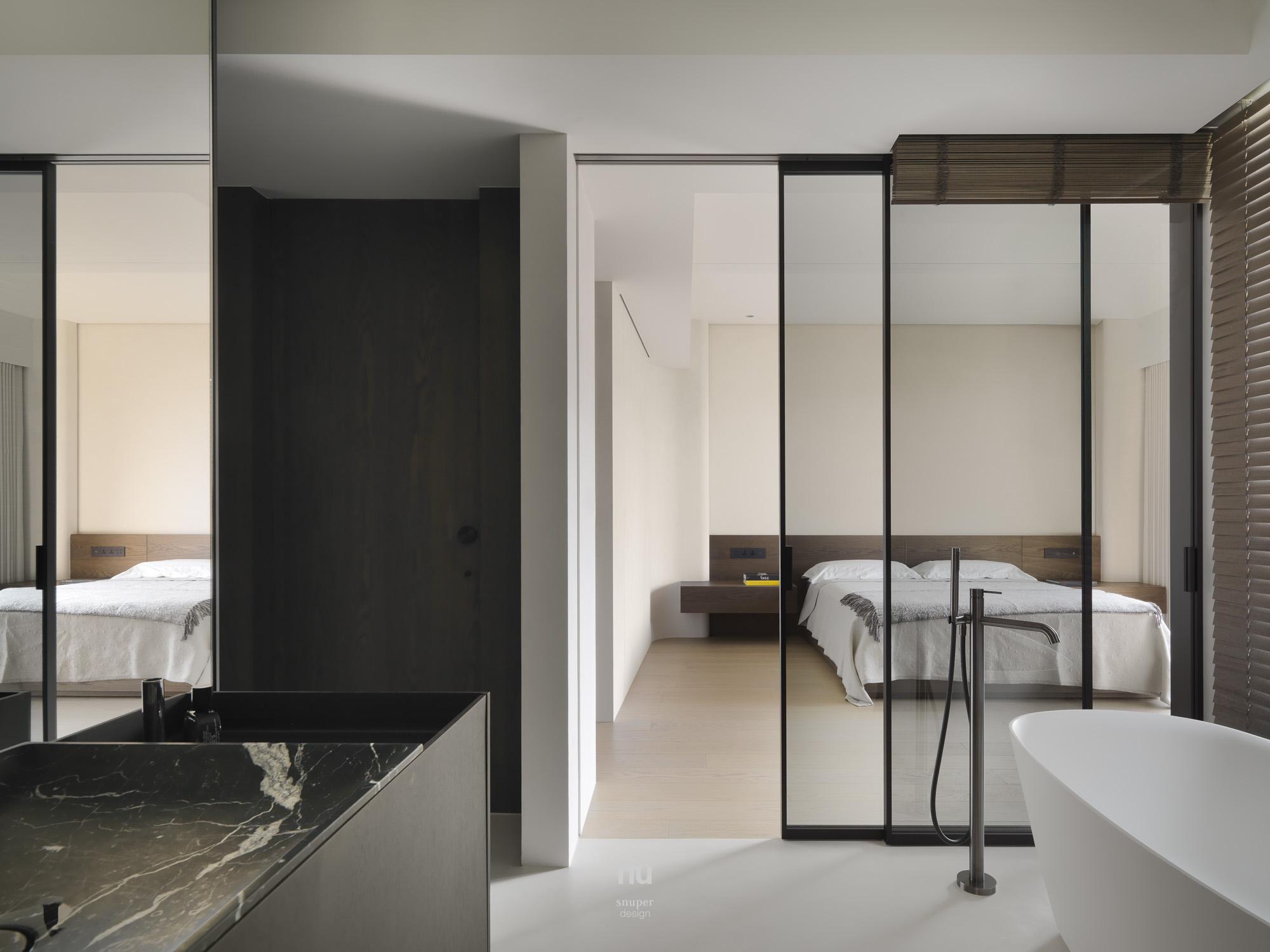 家具視覺重心適度下移,使挑空尺度更為清晰;深淺材質交錯,讓公共場域保有開放感,也維持穩定秩序。私領域則進一步收攏情緒,將休息留給光與更純粹的空間本質。