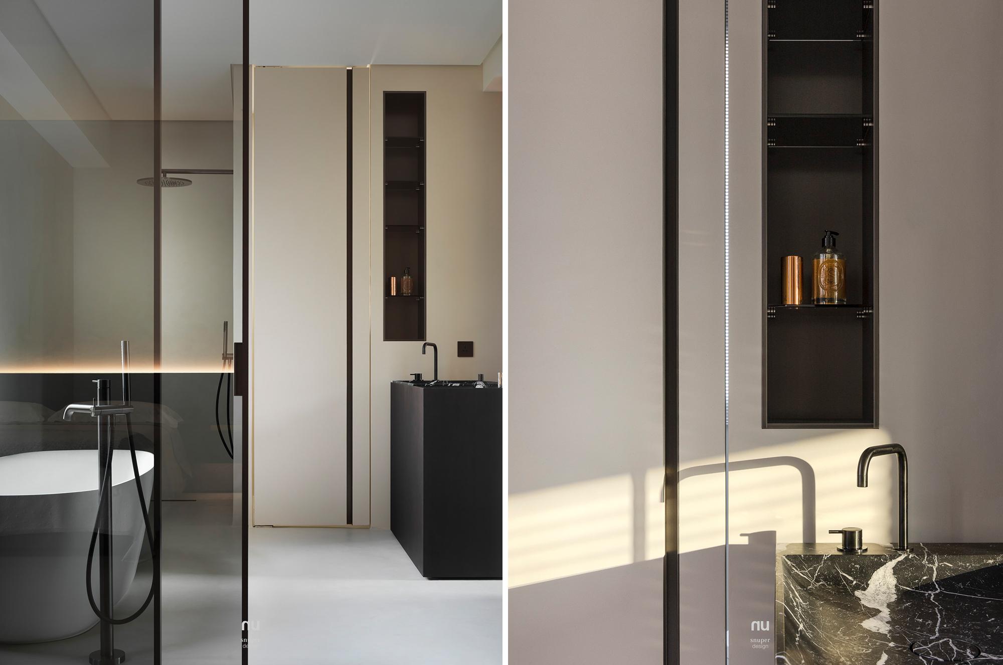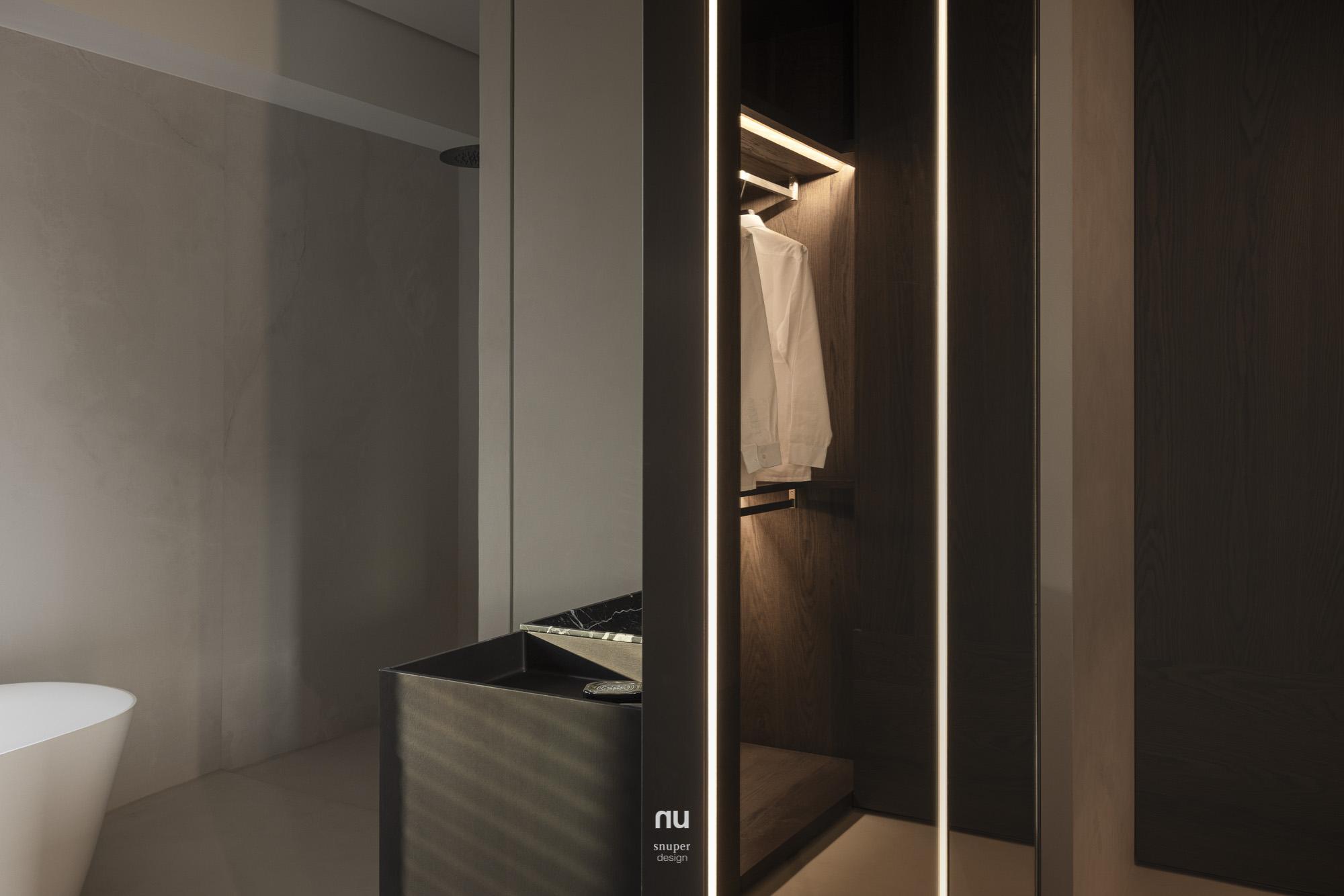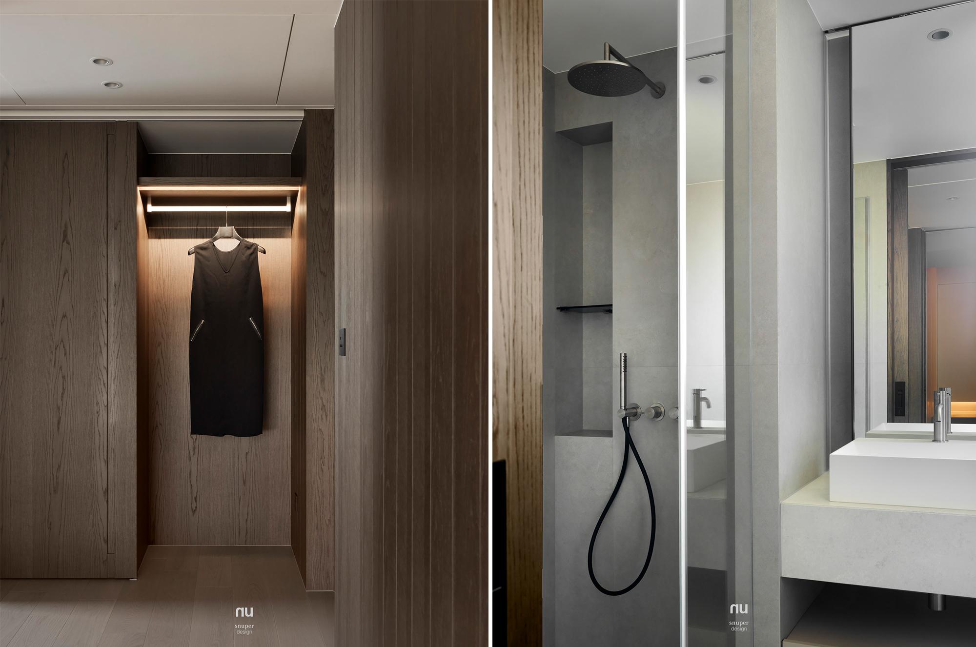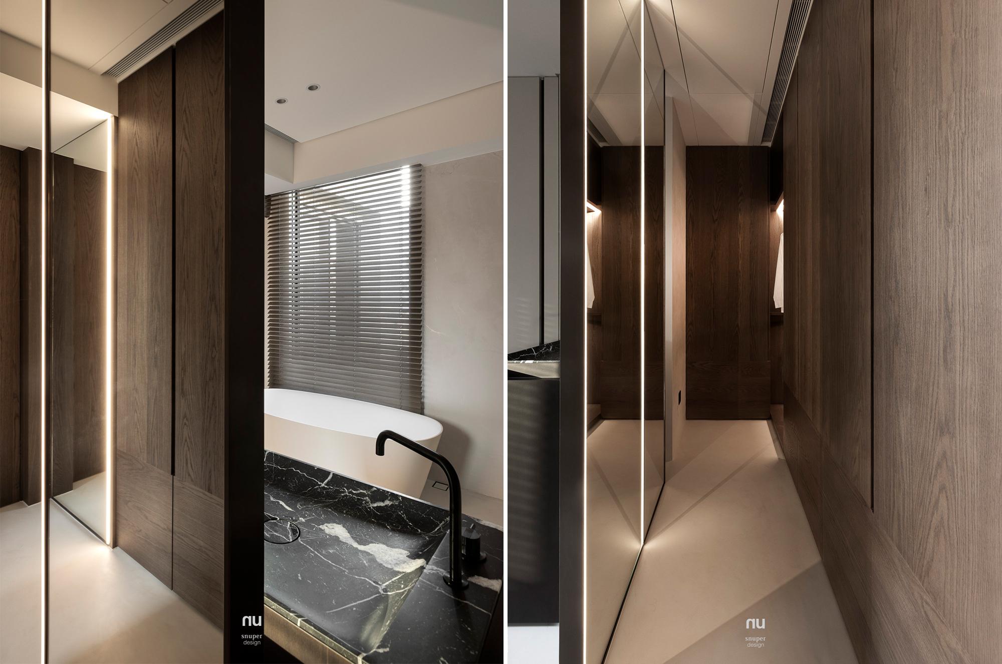 家具視覺重心適度下移,使挑空尺度更為清晰;深淺材質交錯,讓公共場域保有開放感,也維持穩定秩序。私領域則進一步收攏情緒,將休息留給光與更純粹的空間本質。