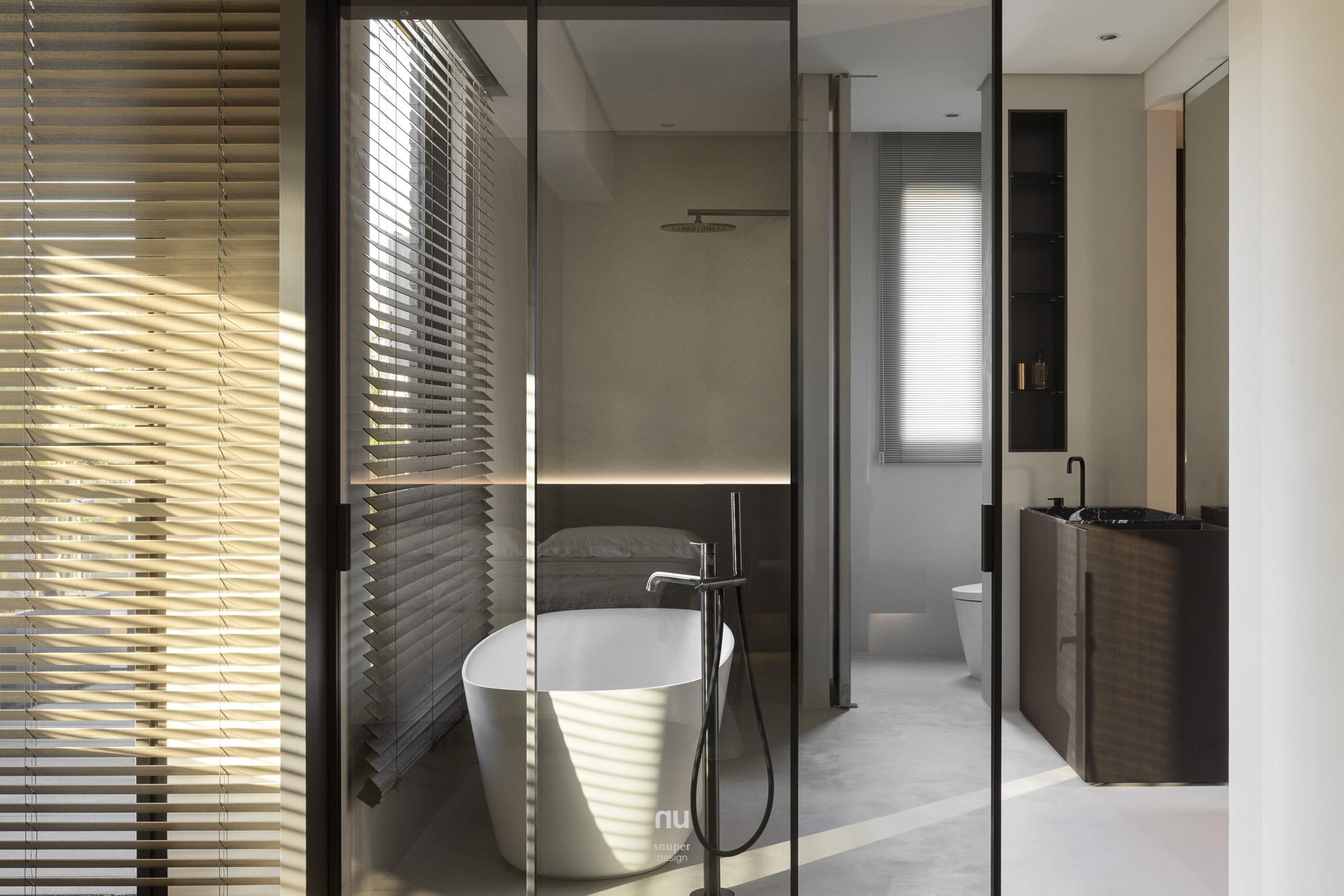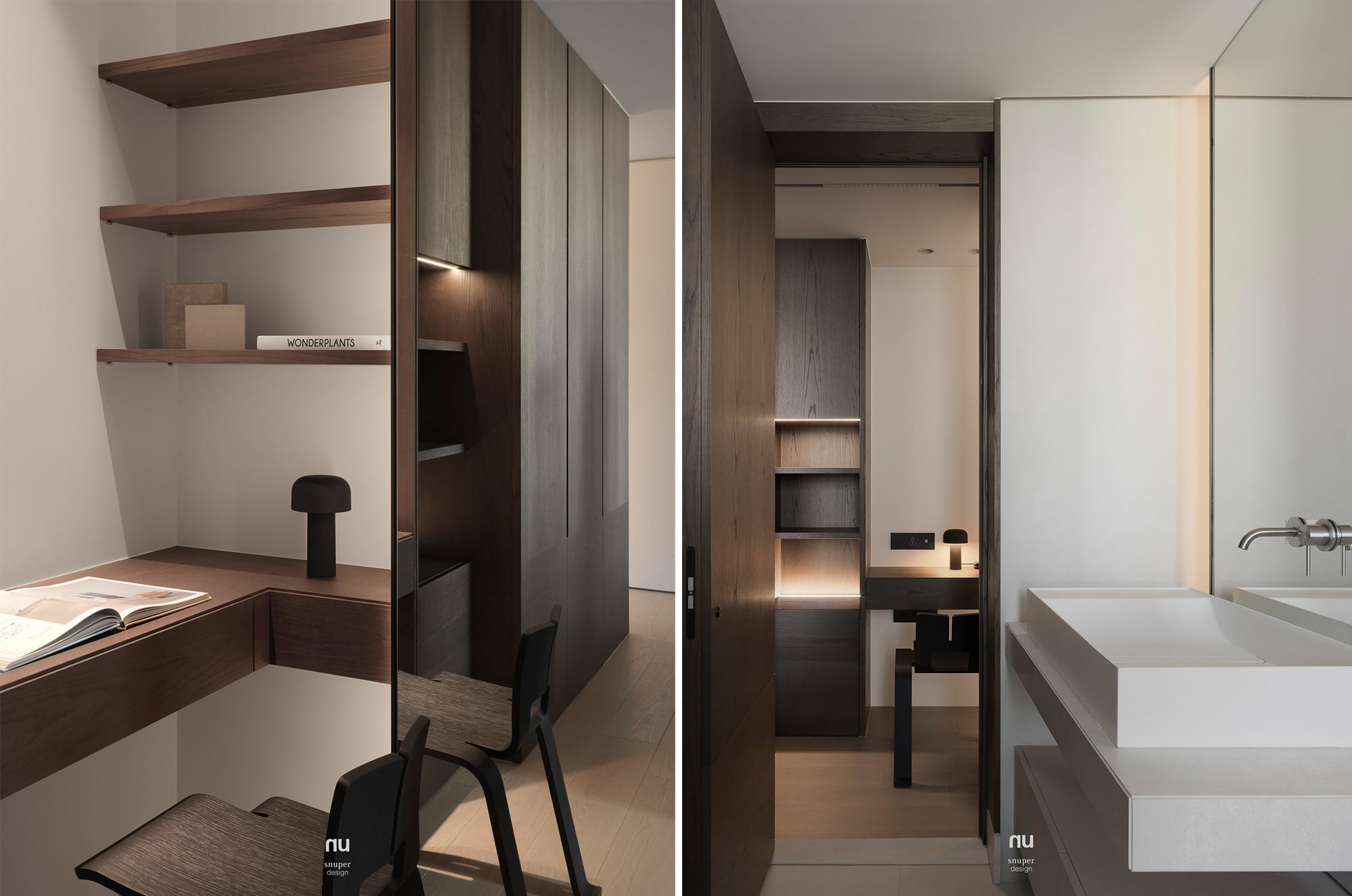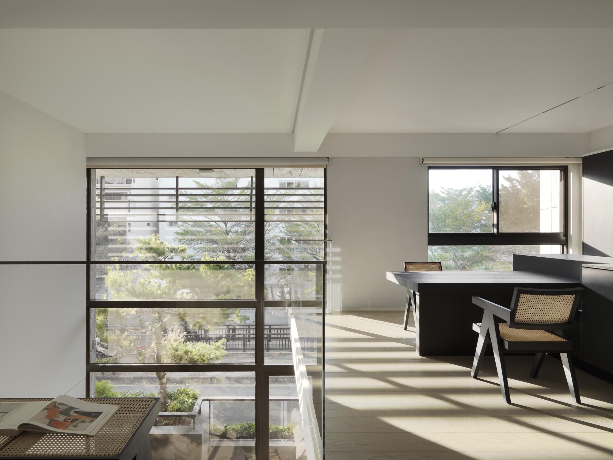 機能隨樓層向上展開,從起居、閱讀、健身與家庭交流,到私密休憩與彈性使用,各自被清楚安放。於是這座住宅所呈現的,不只是風格上的日式節制,而是一種安靜、耐看且能與時間長久相處的生活狀態:不張揚,卻耐看;不刻意言說,卻處處完整。